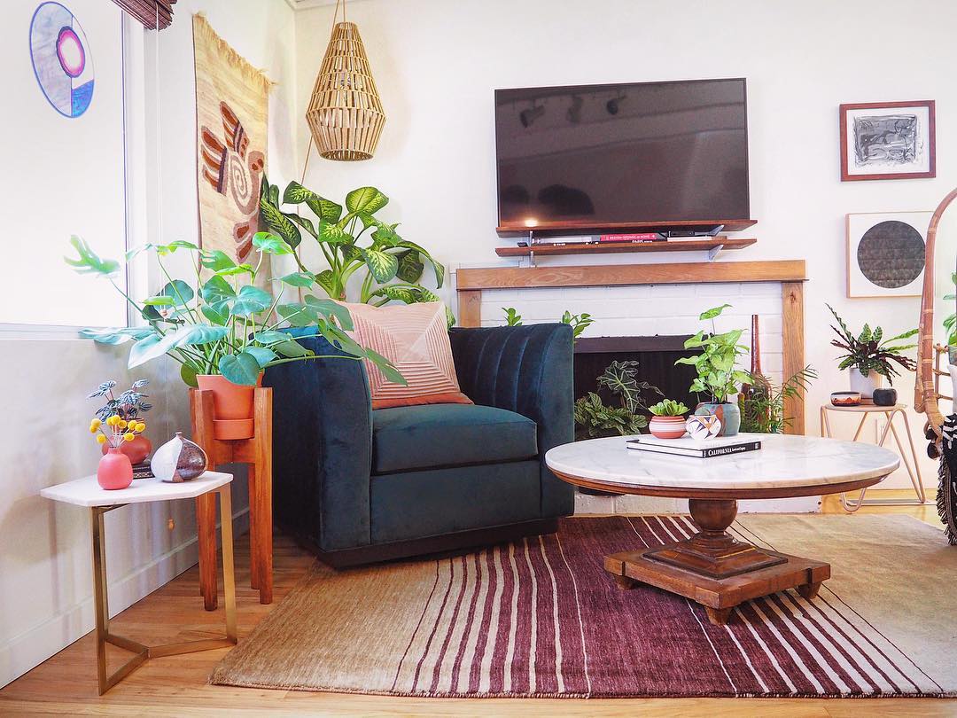 Katie Mack (@katiemackmusic) is a singer/songwriter who lives in Los Angeles, CA. In addition to music, she loves to express her creativity through styling and design. She’s a mother to a precocious 4 year old and has 97 indoor house plants. Her Mod-Desert-Boho style is eclectic and unique, and she decorates most of her home with thrifted treasures she finds. Katie’s newest obsession is her Apt2B Nora Swivel Chair from Kyle Schuneman in EVERGREEN VELVET
